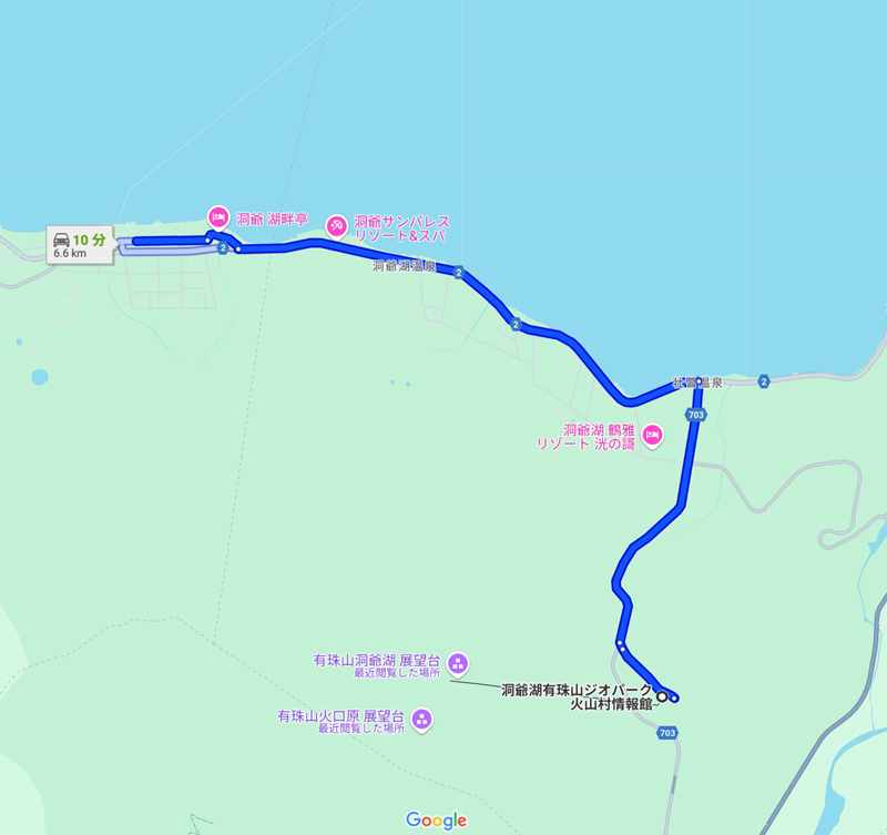 PM4:20。いよいよ本日の宿泊地・洞爺湖温泉へ向かいます。ここから宿までは約6km。旅の疲れがじわじわと感じ始めるタイミングですが、これからの温泉と夕景が待っていると思うと足取りも軽くなります。