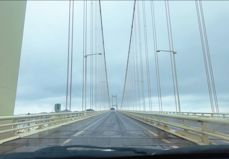 遠くに見えてきたのは、白鳥大橋。室蘭港をまたぎ、絵鞆(えとも)半島とを結ぶ、東日本最大級の吊橋です。ダイナミックな景観に思わずテンションが上がります。