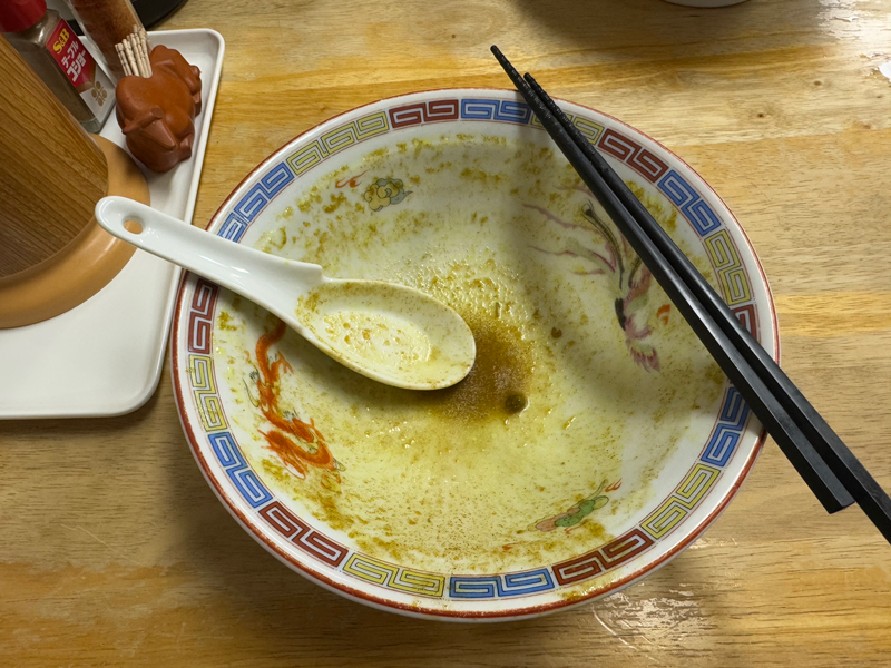 「やきとり(実は豚肉!)」も室蘭を代表する名物ですが、こちらはビールが欲しくなる一品。ドライブ中の昼食にはちょっとハードルが高いため、今回はもうひとつの名物・カレーラーメンを選びました。