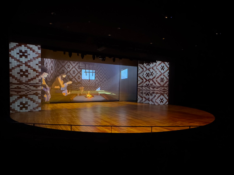 最初に向かったのは「ウエカリ チセ(体験交流ホール)」。ここでは、アイヌの歴史や文化を紹介する30分ほどのシアタープログラムが上映されており、視覚的にも分かりやすく学ぶことができます。