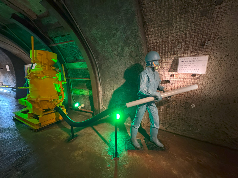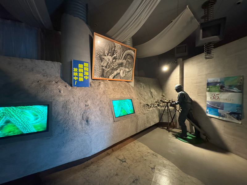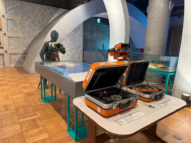 åéå ã®èŠåŠã¯ããã30åãå£ã«ã¯åœæã®å·¥äºåçãè³æã䞊ã³ããšããã©ããã«æ®ãæ©æ¢°ã®è·¡ãæåã®å€§å·¥äºã®è¿«åãç©èªã£ãŠããŸããç §æã«ç §ããããåéã¯ç¬ç¹ã®é°å²æ°ã§ãæ©ãã ãã§æ¢æ€æ°åãçãäžãããŸãã