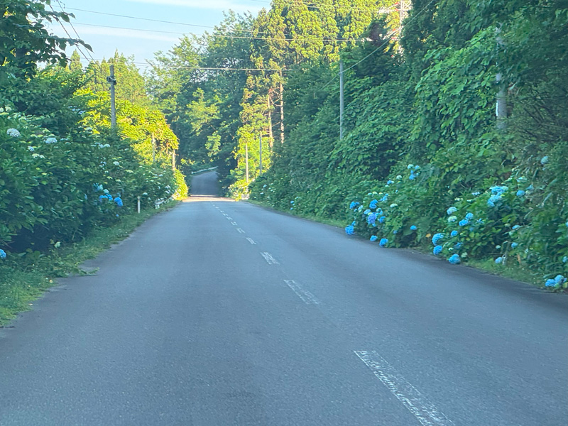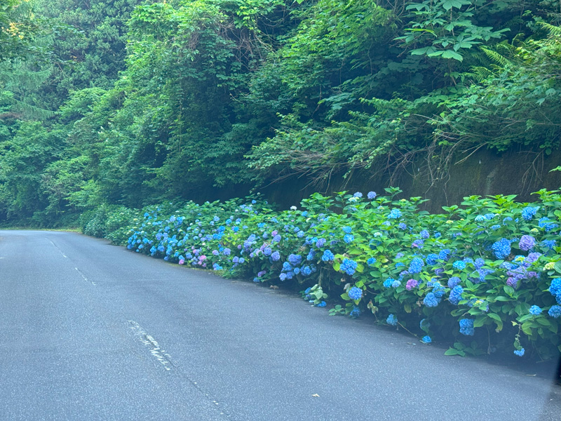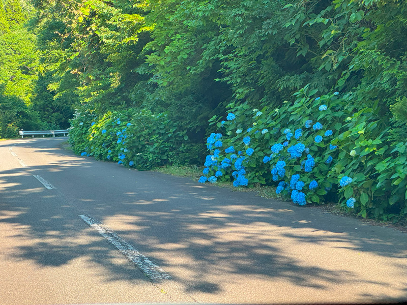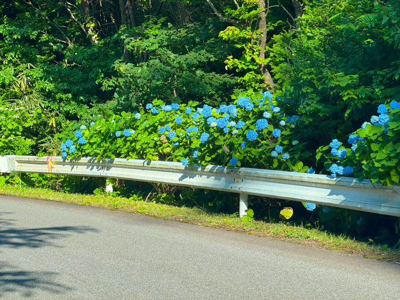 è»ãèµ°ããããšãç·ã®æé¢ã«çŽ«ãéã®è±ã次ã ãšçŸããé²ãã«ã€ããŠéè·¯ã®äž¡èãåãå°œããããã«å²ãèªããç¹ã«äžå©é§ ã«è¿ã¥ããšè»çªã¯ãŸãã§ããããã®å£ã«ããã©ã€ãããªããæããäœåºŠãã¹ããŒããèœãšããŠèŠå ¥ã£ãŠããŸããŸããã