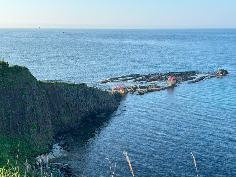 ããã«éæ©éãäžã£ãŠãããšãç®ã«é£ã³èŸŒãã§ããã®ã¯çã£èµ€ã«å¡ããã2æ¬ã®æ©ââæœ®éšæ©ãšæžæ©ãéãæµ·ã«èµ€ãæ©ãæ ããŠããŸãã§çµµèæžã®ãããªå æ¯ã§ãã