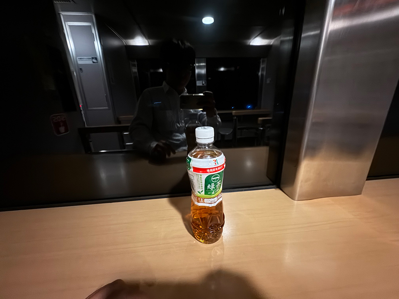 誰もいない空間で、焼酎ハイボールを一杯とお茶を少々。