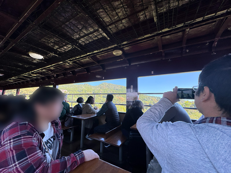 出発時刻が近づくころ、向かいの席にも3人家族が乗り込み、トロッコ車両は満席に。