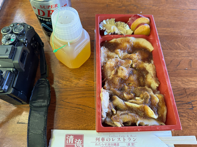缶ビール片手にお弁当を頬張りながら、列車は渓谷沿いをゆっくりと進みます。