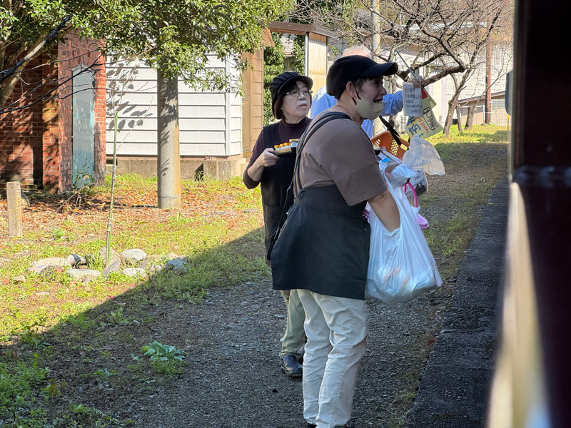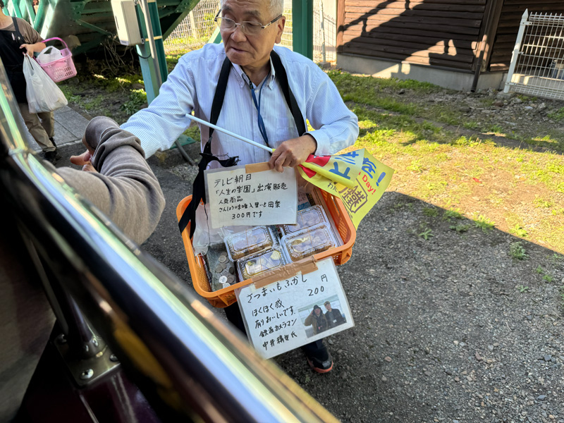 ホームではお弁当やコーヒー、アイスクリーム、唐揚げなどを売る売り子さんの姿も。