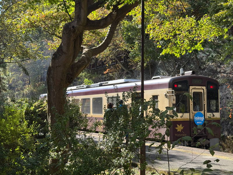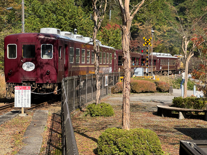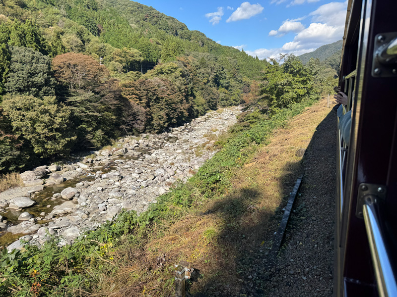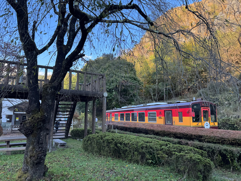 渓谷沿いをゆったりと進む車窓から、四季折々の自然が楽しめることで知られています。