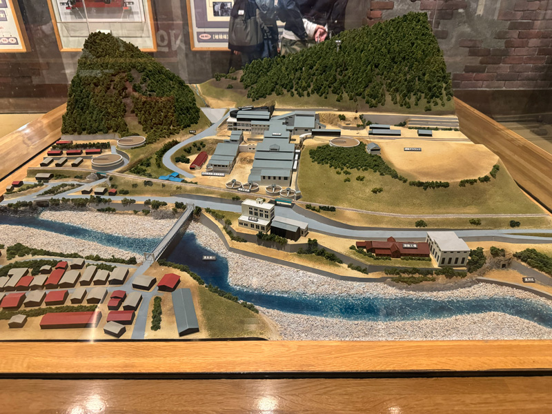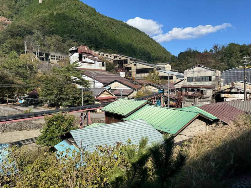 やがて列車は再び鉄橋を越え、山裾に広がる大きな建物や工場の様な物が見えてきました。