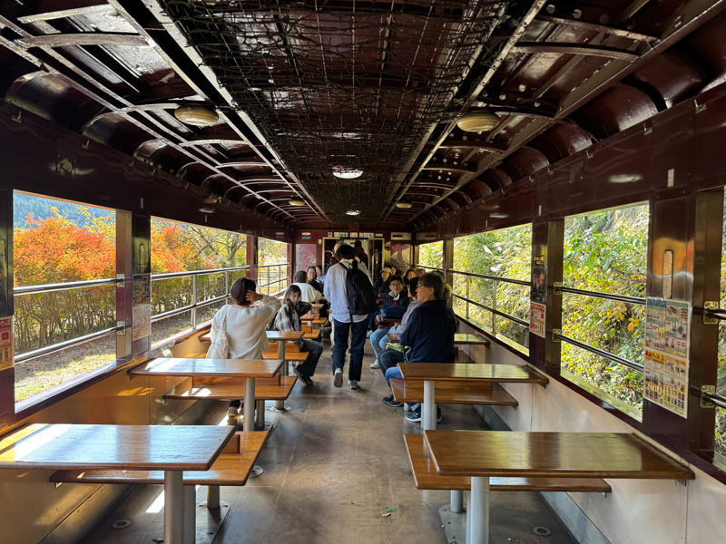 乗車には整理券が必要で、インターネットなどから事前に予約が可能。ただし、この時点では座席までは確定せず、乗車当日に大間々駅で整理券と引き換えに座席指定を受け取る仕組みになっています。