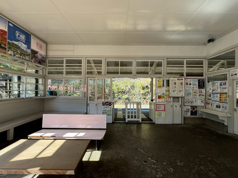 この駅は駅舎内に簡易郵便局がある珍しい駅で、待合所やホームが登録有形文化財にも指定されています。