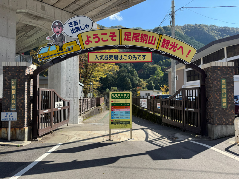 10分ほど歩くと、「ようこそ足尾銅山観光へ!」の看板が見えてきました。