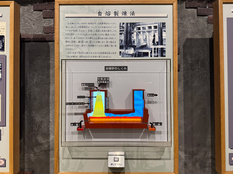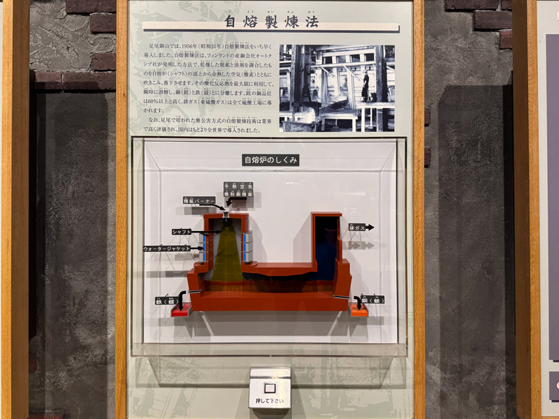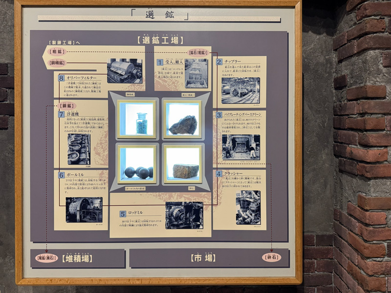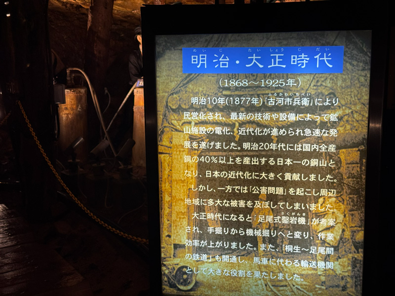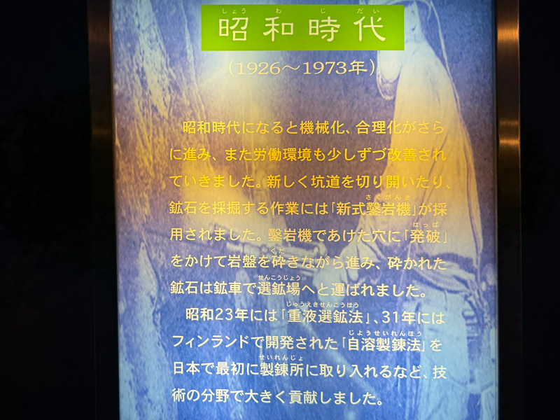 やがて200mほど進むと、広い空間に出ます。ここには銅資料館があり、模型や映像でより詳しく鉱山の歴史を学べます。