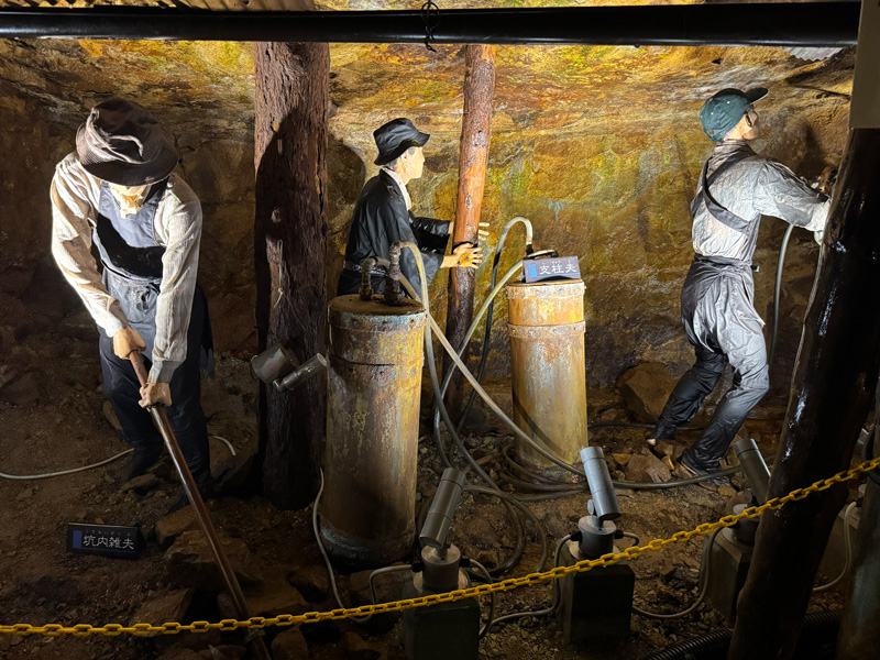 坑内は江戸・明治・大正・昭和と時代順に展示が並び、人形による採掘作業の再現がとてもリアル。