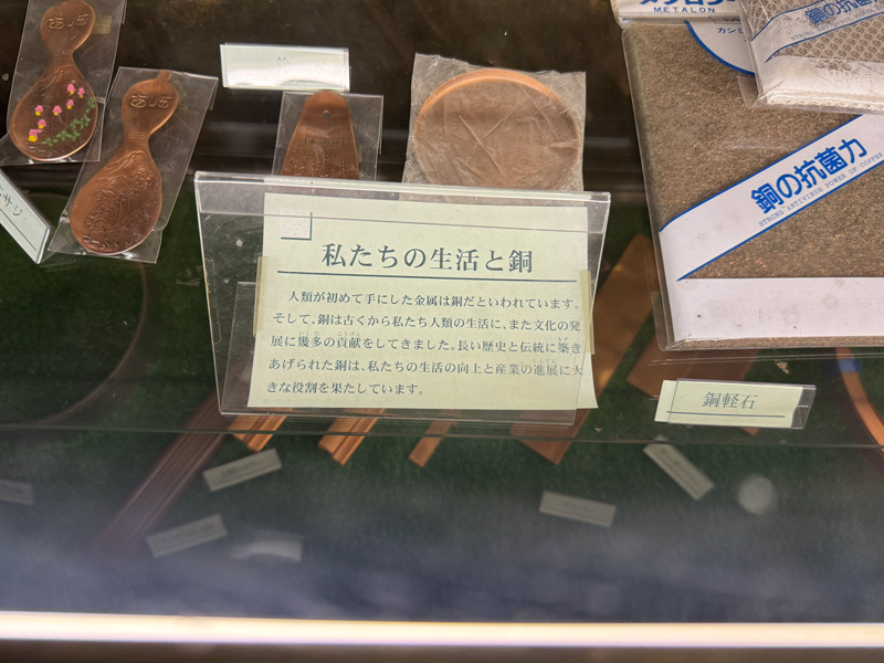 出口へ向かう通路には、銅を使った生活用品や薬品などの展示もあり、じっくりと楽しめました。