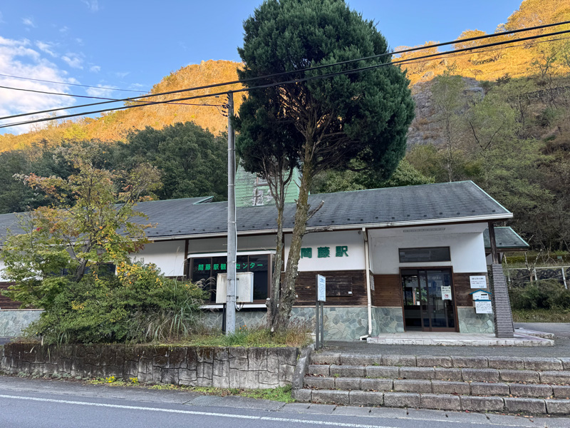 駅舎の壁面にはニホンカモシカの壁画が描かれており、運が良ければ本物にも出会えるとか。
