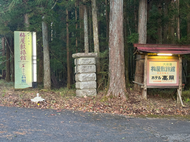 PM4:50、バス停から約30分。木々が生い茂る傍らにお宿の看板が!ようやく今夜の宿に到着しました。