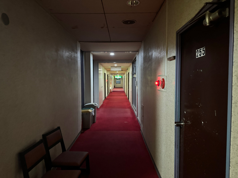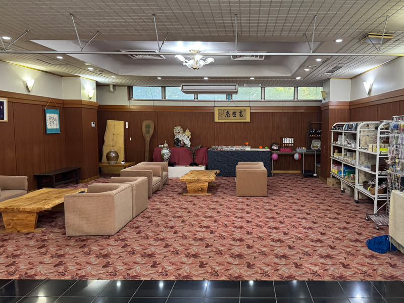 建物はどこか懐かしいレトロな佇まい。ロビーや館内には、かつて団体客で賑わっていた頃の名残が感じられます。