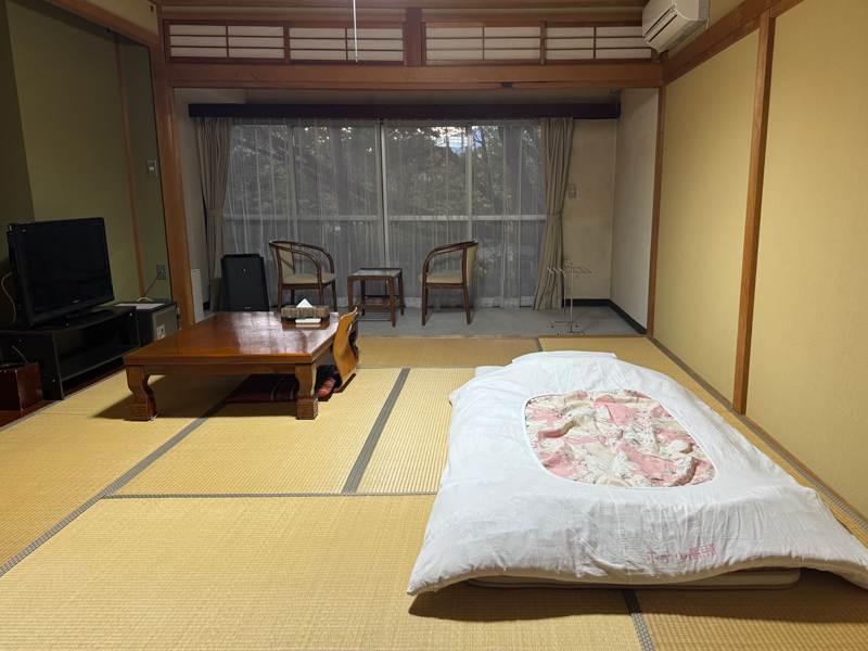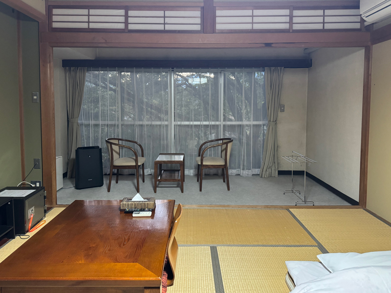 今回泊まったのは、8畳の和室に広縁がついたひとりではかなり広めのお部屋。