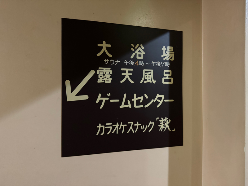 大浴場の横には宴会場やスナックの案内板も残っていて、「昔はきっと華やかやったんやろうなぁ」と想像してしまいました。(現在は営業していないようです)