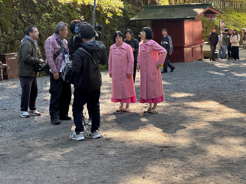 近づいて見てみると…なんと阿佐ヶ谷姉妹! 日光東照宮のロケでちょうど来られていたようで、朝からなんだか得した気分です。