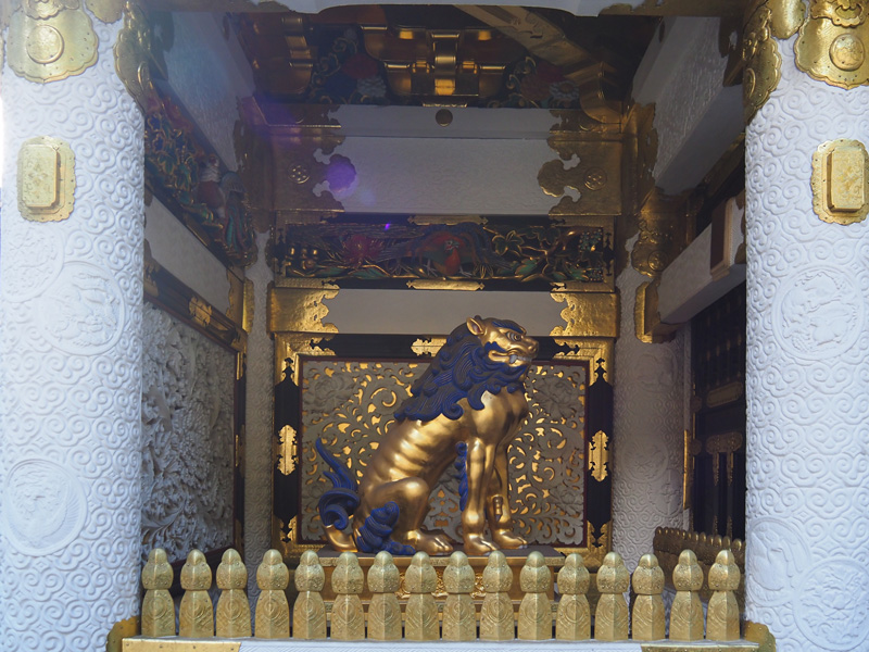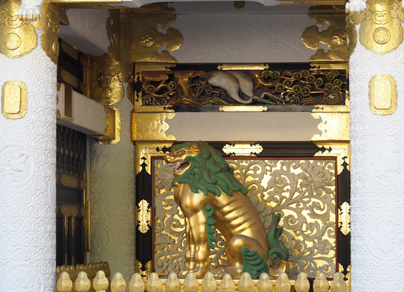 陽明門の楼下には随身像や狛犬が安置され、まさに東照宮の聖域にふさわしい荘厳な雰囲気。