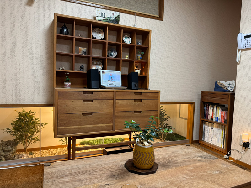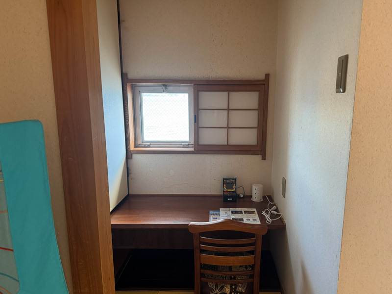 さらに床の間奥には、小さな書斎のような空間まであり、ここで何か書き物をしたくなるような、不思議な趣があります。