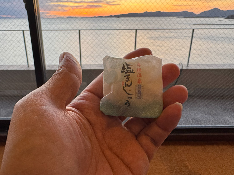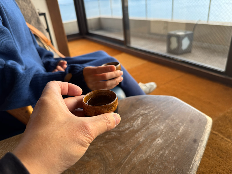 私たちは地酒を片手に、瀬戸内の海に沈むサンセットを満喫。