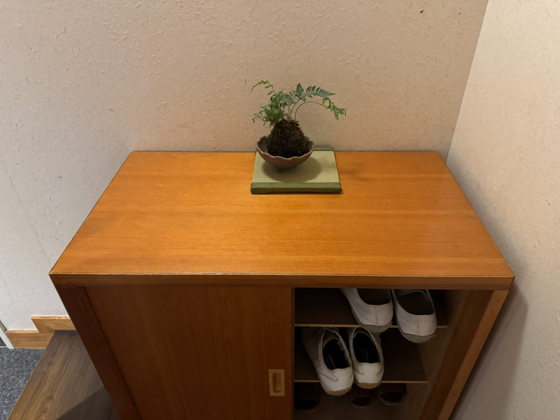 玄関を入ると、苔玉があしらわれたシンプルな廊下。
