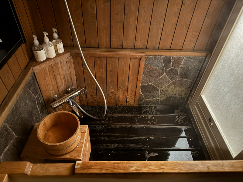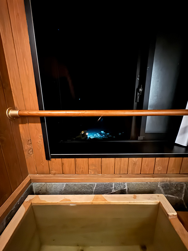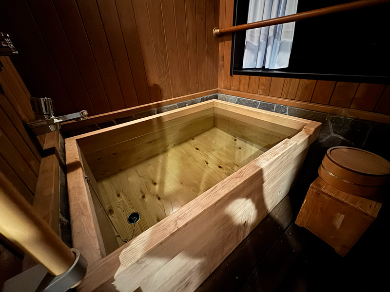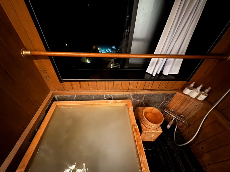 ビューバスにも再び入り、檜の香りに包まれる贅沢な時間。