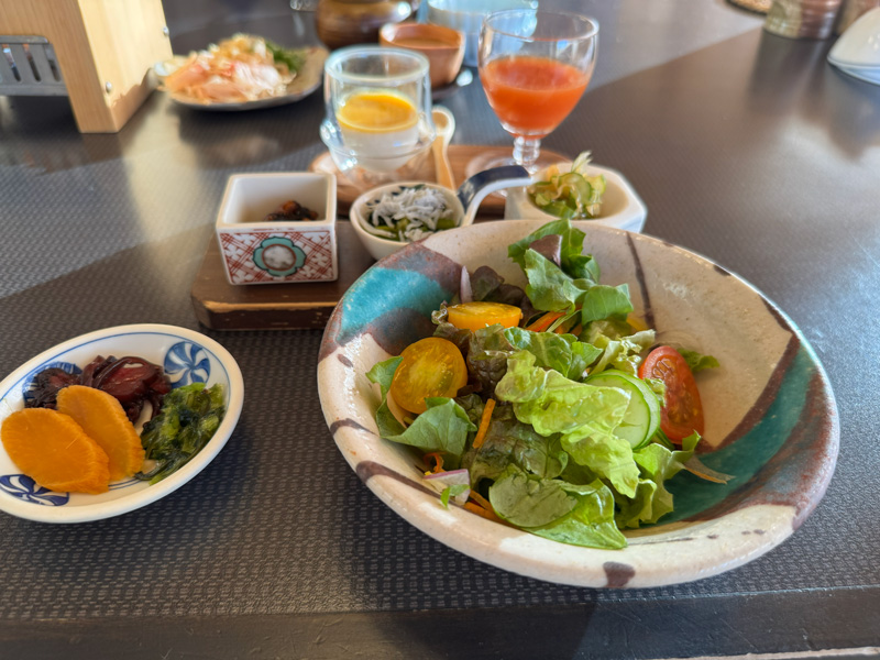 和洋折衷でボリュームたっぷりの朝食をいただき、食後は朝風呂へ。