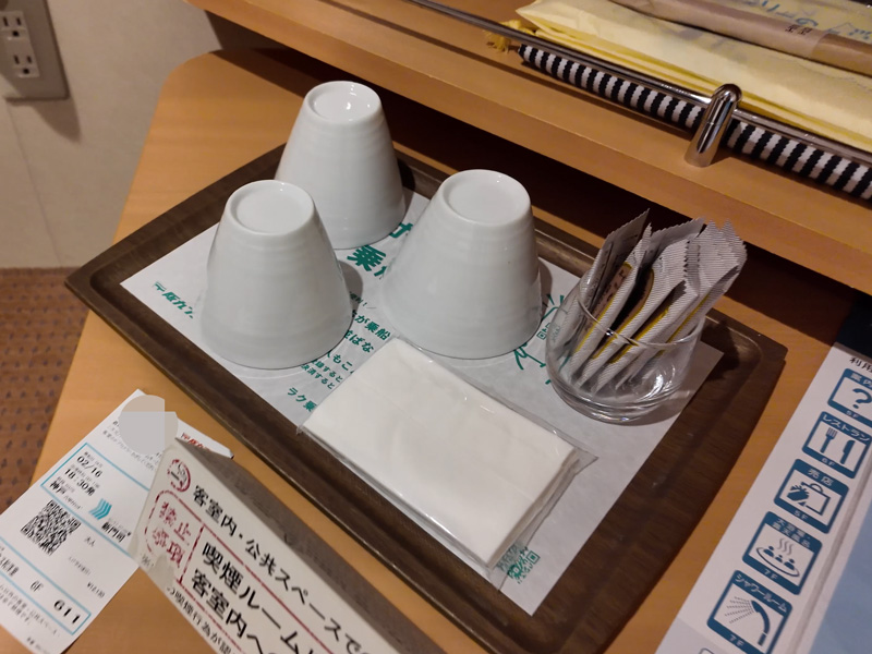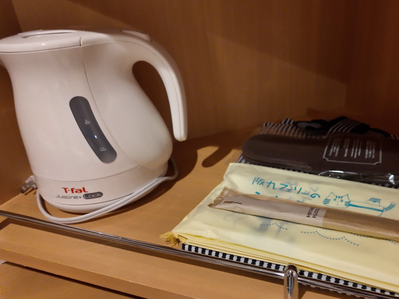 茶器セット、ケトル、浴衣、タオル、スリッパ、歯ブラシまで完備。