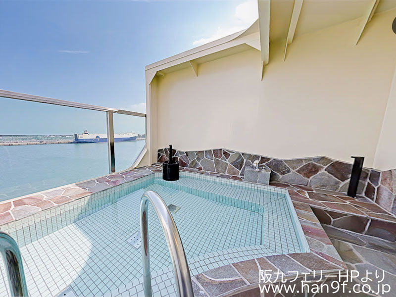 このフェリーの特徴は、露天風呂があること。