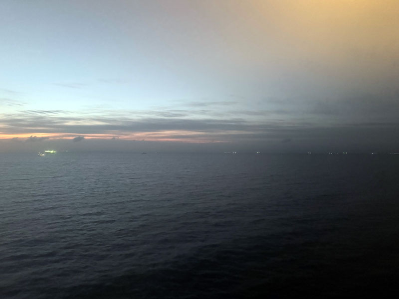 船窓の外はまだ薄暗い。