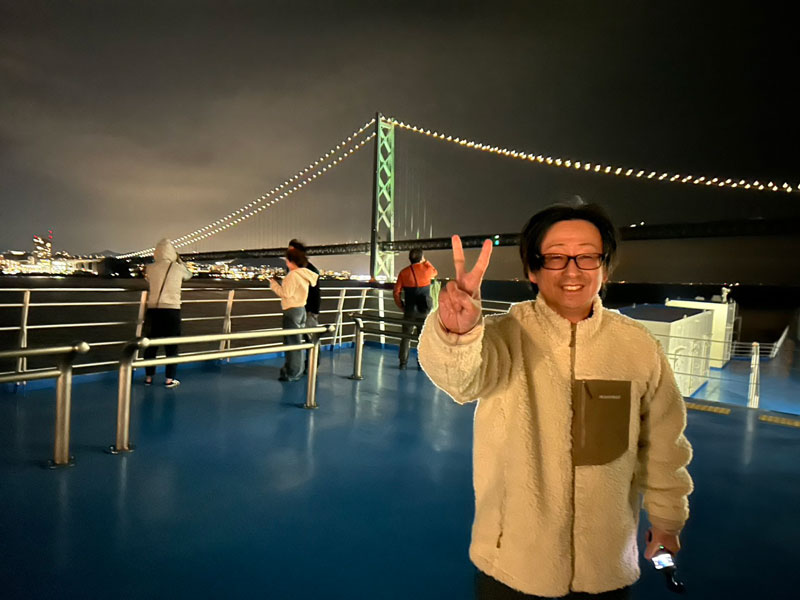明石海峡を通過し、デッキから部屋へ戻る途中——