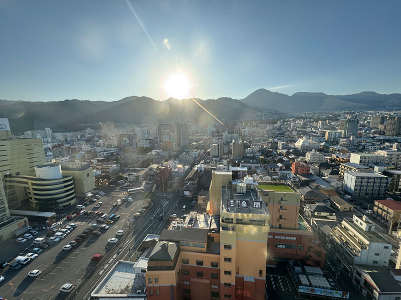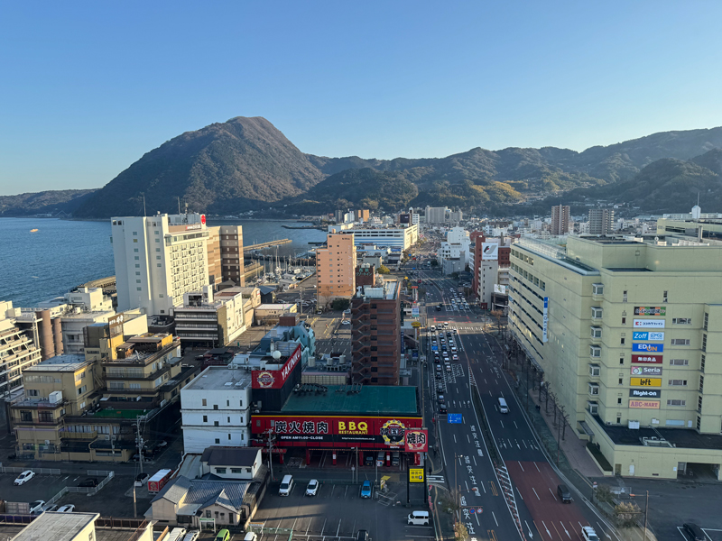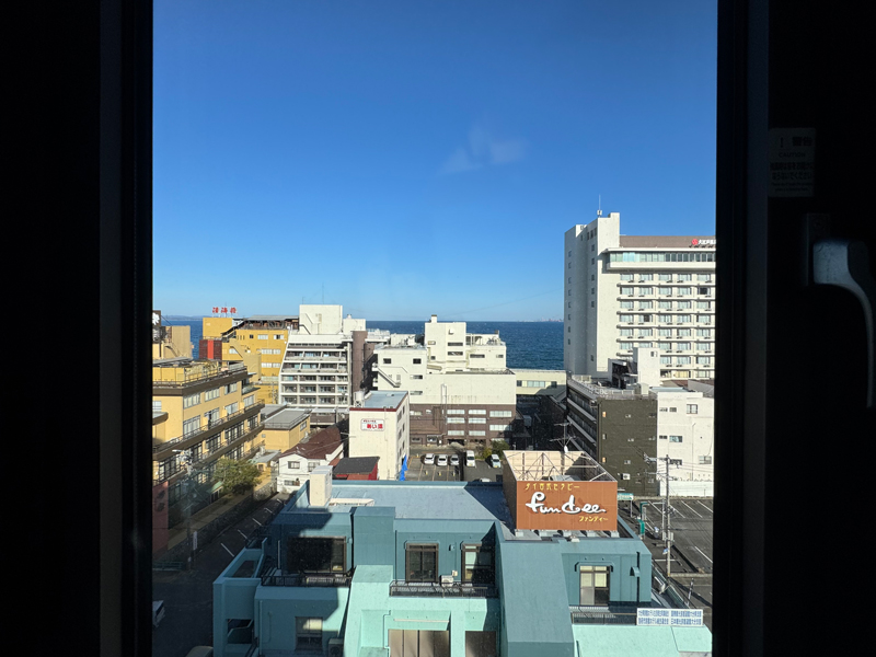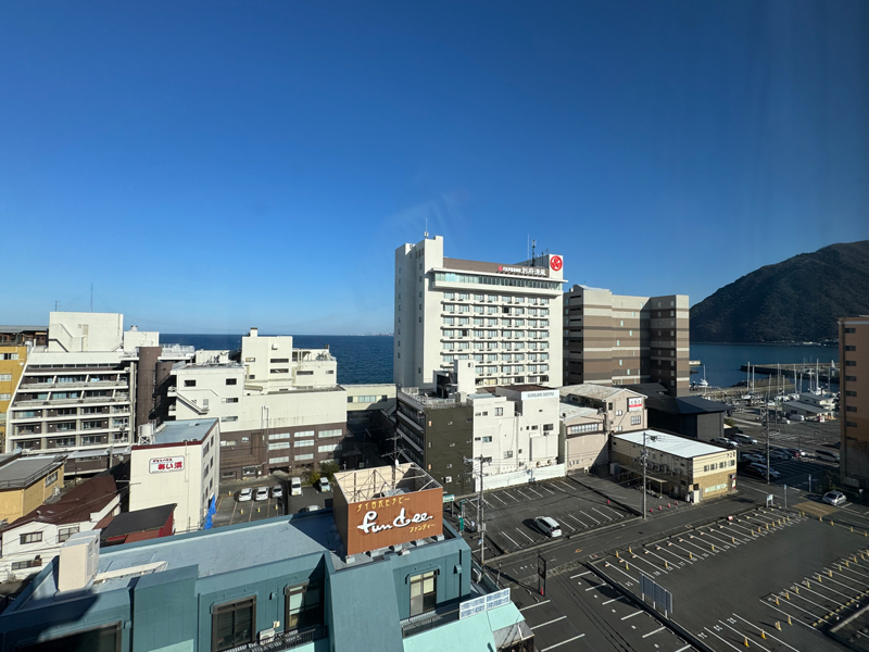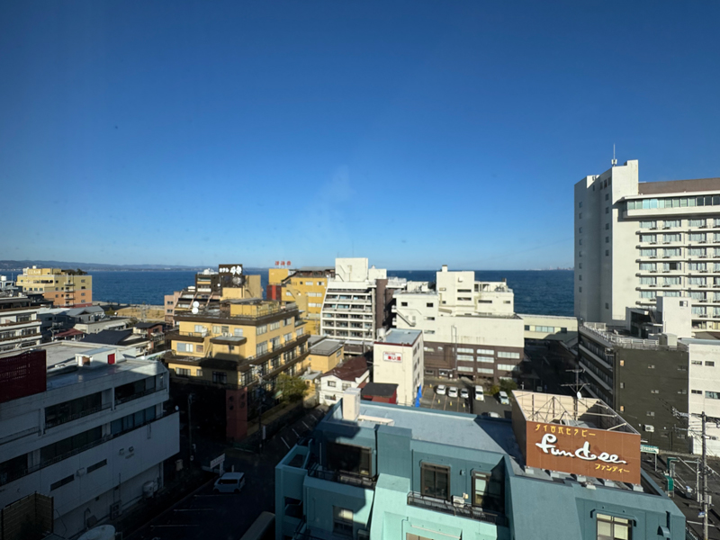 正直、眺望はあまり期待していなかったのですが、窓からは別府湾がちらりと見える良い景色。