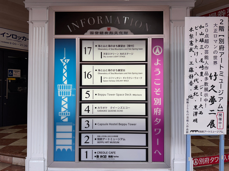 今日はすでに鉄輪温泉でミュージアム系を見てきたので、展望台のみ800円にしました。
