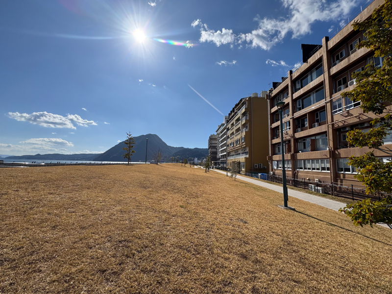 穏やかな別府の朝の風景が広がっています。